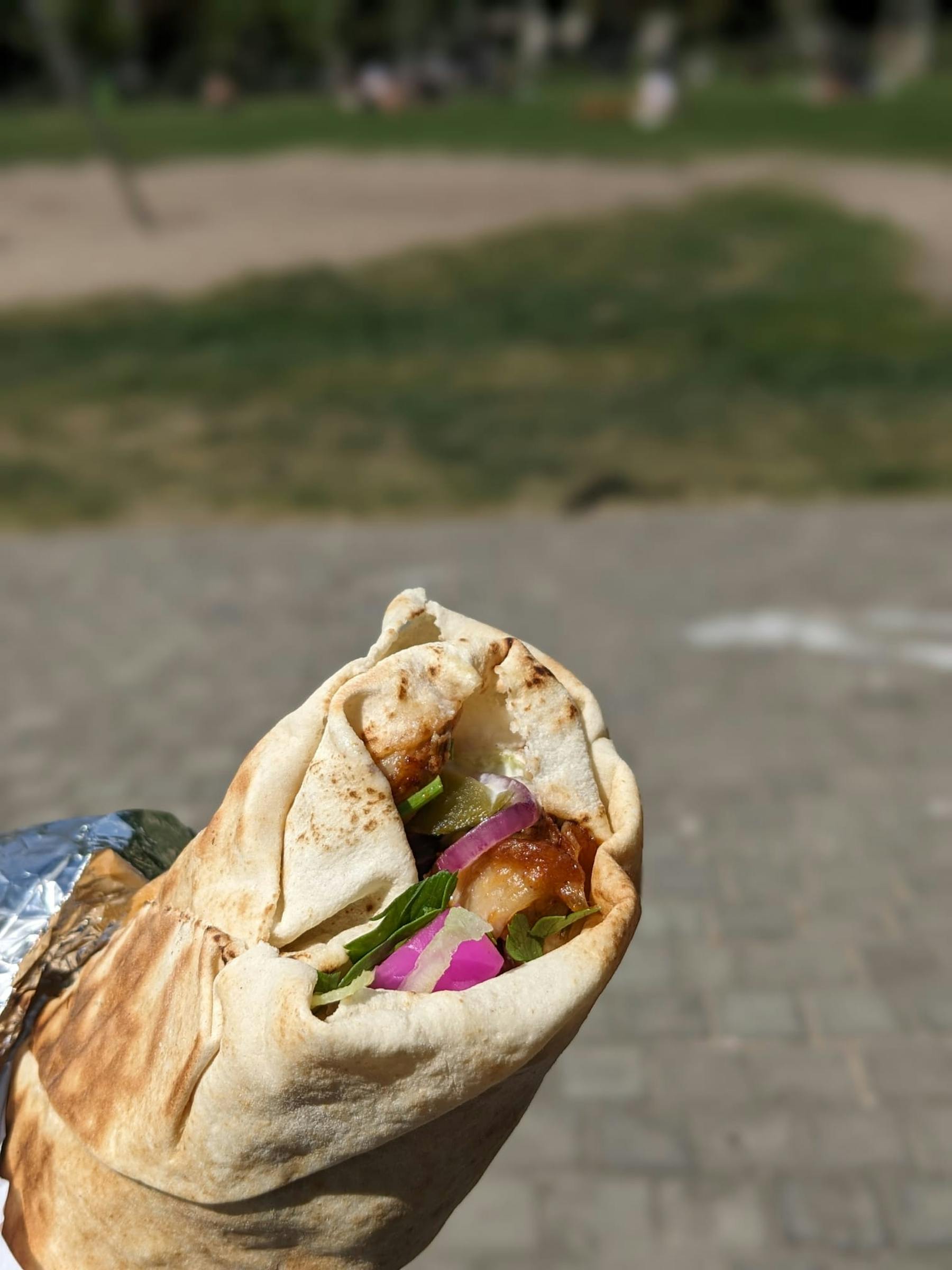 Bread is a bit dry and the meat could be seasoned more, but still decent and juicy chicken thighs. The toum could also be stronger, but not bad all in all. Pretty safe choice for the kiez. Oase across the street is still far better.