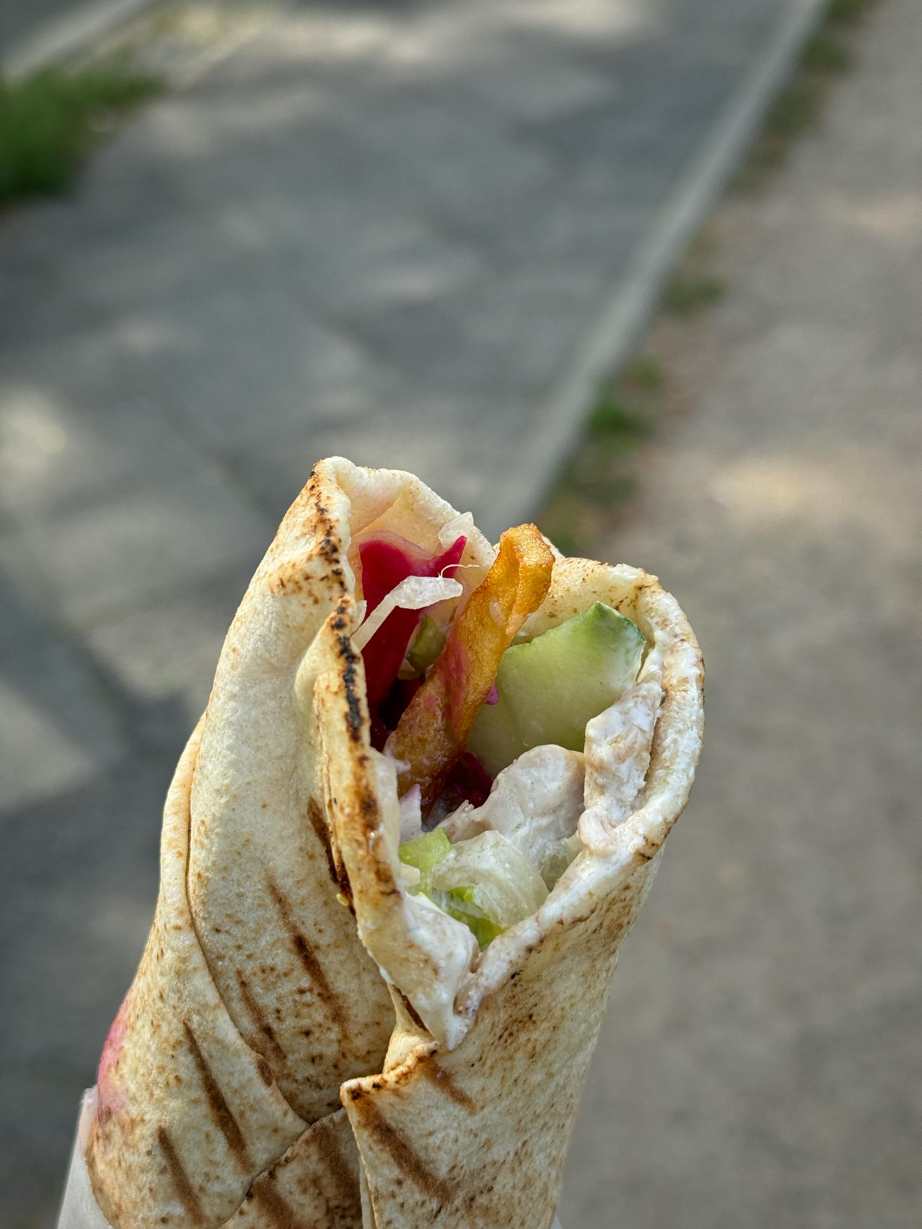 A very "neutral" shawarma with nothing standing out in terms of chicken seasoning or garlic. It's a very bland unoffensive flavour, and felt way too salad-ey with big chunks of cucumber and tomato. There's also a lot going on with the menu (tons of vegan options for standard things) which might make it hard to focus on a few core items. There's several better shawarmas in the area depending on how far you want to walk - though they accept card here which is a plus.