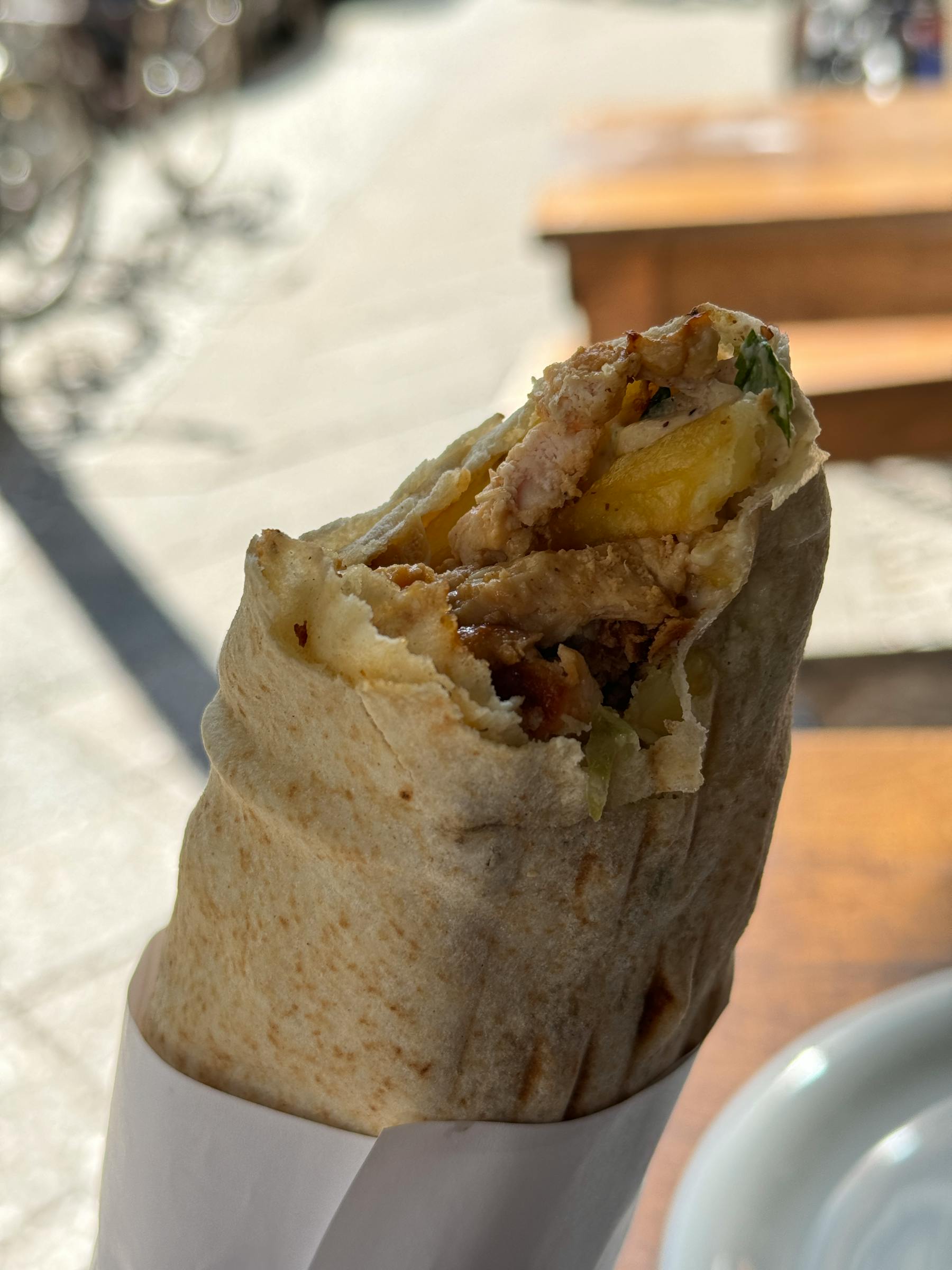 '24 update - they've opened a new Maroush Grill joint next door, so the crowd is more managable and the shawarmas are better? Pita's made way for saj bread, and there's better meat, stronger toum, and no more veggies in there, just a more classical shawarma with fries stuffed in. They also have a good meat shawarma now. /// Earlier it was just another hit and miss on many options, but overall a safe choice in the kiez: Pita v. Saj sometimes, Salad v. Makali veggies sometimes, though the meat and garlic are consistently safe.