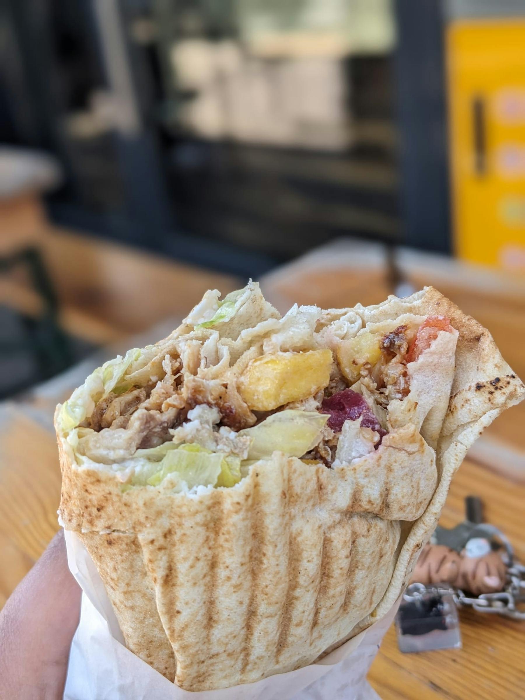 Really friendly couple running the place serving up some good Hawawshi and Koshary - the Shawarma itself is simple, no BS. Juicy chicken and good toum. The overall roll is a bit soggy though with too much tomato and warm lettuce by default. Though the toum is pleasant and nice! Safe choice all in all, especially given it's still 5EUR.
