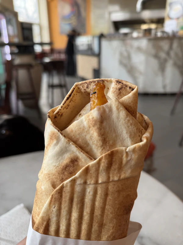 Honestly, at 4.5EUR the size is massive, and that alone gets it a star for how much of a bang-for-a-buck it is. The rest of it makes it clearer why it's that cheap. The shawarma is packed with hummus, yoghurt, sauces, over-sour pickles, dry meat, and so much that it's a jumbled mix of everything with no real saving grace. Overall it's just a very disappointing experience with much better shawarma just across the street at several joints around Gorli.