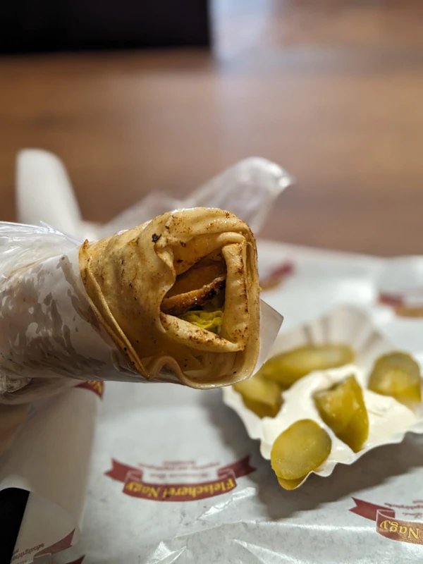 Had high expectations from this one but the end was really disapponting. The meat is really dry, and the overall shawarma is unnecessarily greasy (I mean it is served in paper wrapped in plastic bags for a reason). There's barely any favour save for the toum which is decent. The shrak itself would be great but it was swimming in grease so was hard to get any taste out of it.